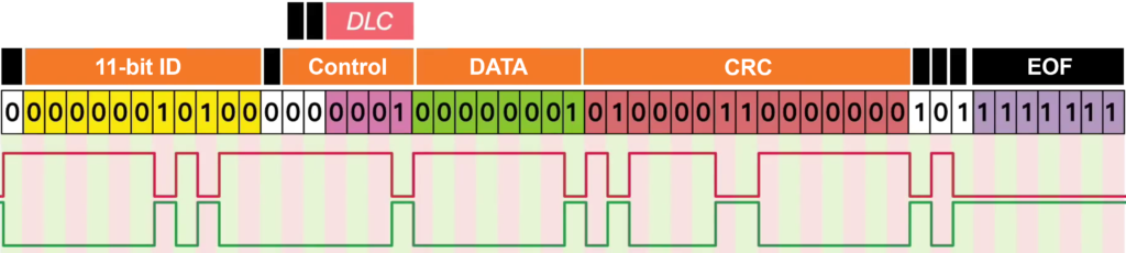 - 0 (dominant) = Data frame (normal frame carrying data)