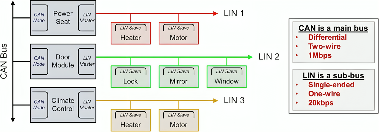 - Allows automotive manufactures to reduce cost by offloading low-speed (<20 kbps), non-safety critical functions from a two-wire CAN bus to a one-wire bus