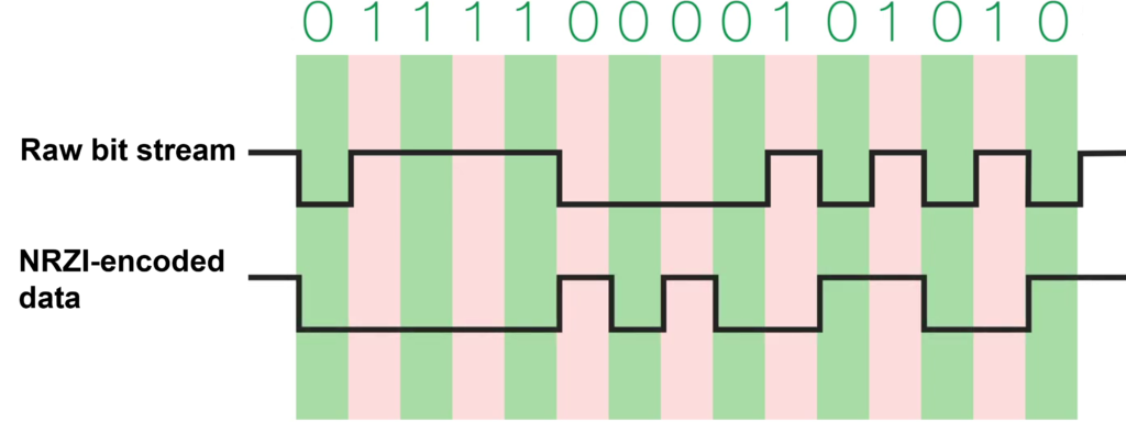 - Non-Return to Zero Inverted (NRZI) Encoded