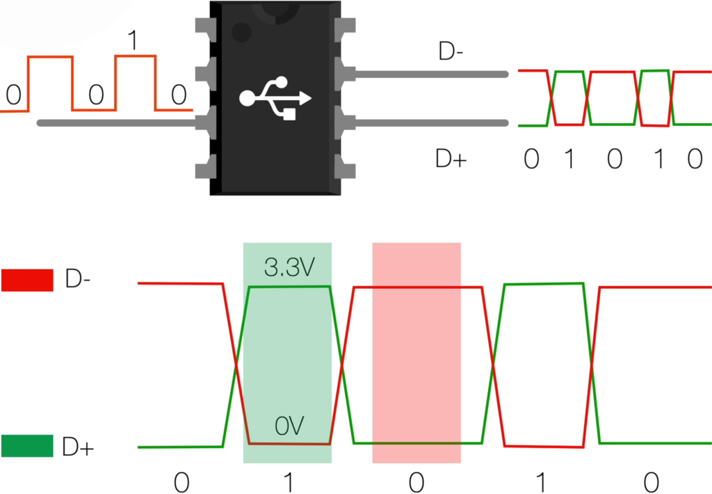 USB Differential Signaling: The 3.3V level shown is typical for USB Full Speed (12 Mbps).